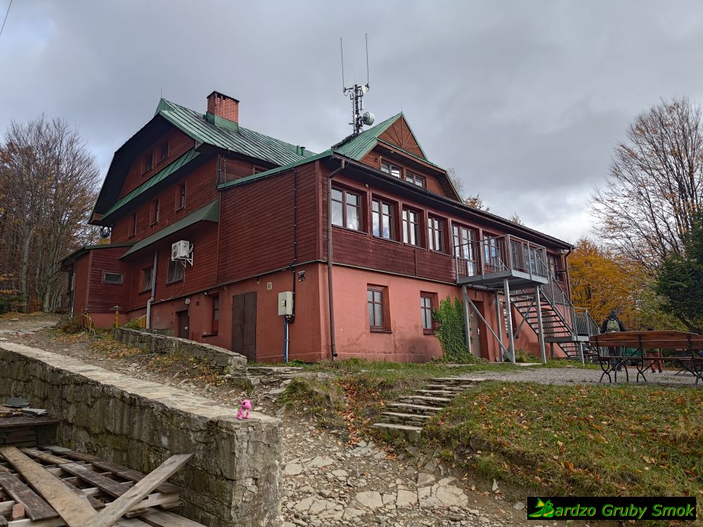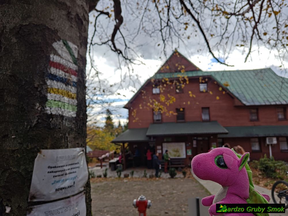 Docieramy do schroniska PTTK Błatnia. Na budynku gospodarczym obok jest nawet namalowany stosowny mural.