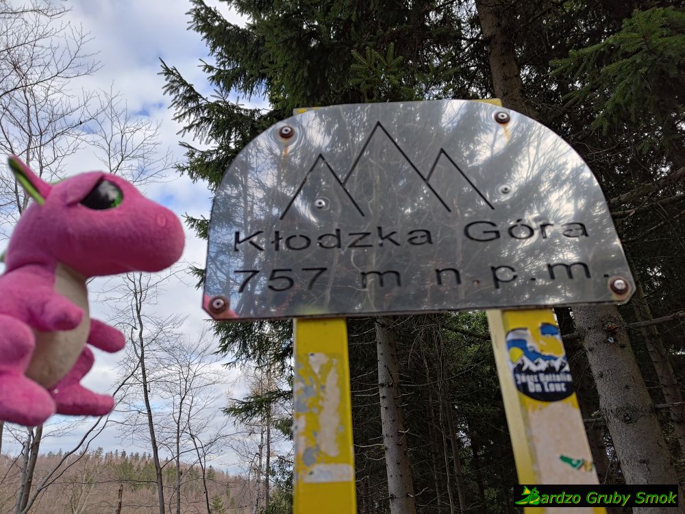 Na szczycie jest sporo ludzi. Pierwsze co się tu rzuca w oczy to oczywiście wieża widokowa o ciekawym kształcie. Jest tu też altana, tabliczka z nazwą szczytu i skrzyneczka z pieczątką GOT/KGP. Kłodzka Góra to najwyższy szczyt Gór Bardzkich (757 m n.p.m.), a tym samym jeden ze szczytów Korony Gór Polski.