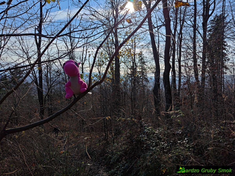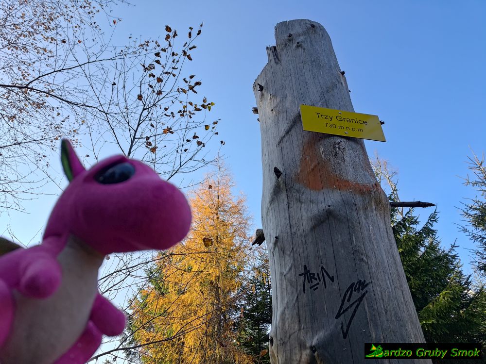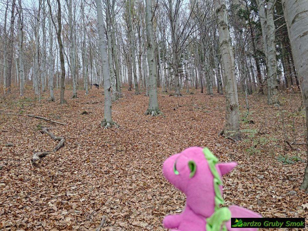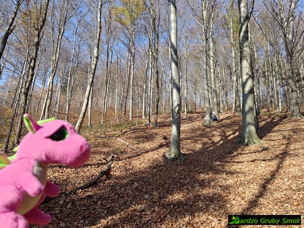 Teraz szlak wiedzie kawałek w dół. Dzisiaj jest tu ślisko na liściach, więc trzeba bardzo uważać. Dalej przed nami spokojny spacer przez Jelenią Kopę aż do Trzech Granic.