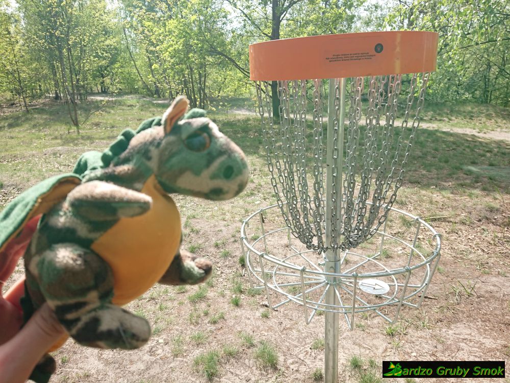 W Luboniu wjeżdżamy do Lasku Majońskiego i natrafiamy na dziwne pomarańczowe konstrukcje. Okazuje się, że jest to teren do gry w disc-golf.